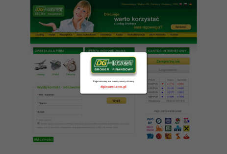 DgInwest to broker finansowy, który w przypadku kantoru internetowego odsyła na stronę firmy Trejdoo, gdzie dowiesz się już więcej.