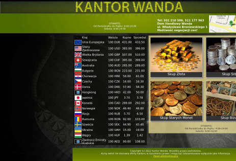 Nazwa kantoru Wanda kantor wymiany walut, skup złota