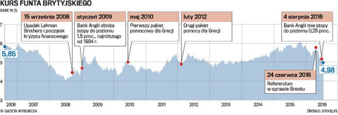 Jak kształtował się kurs funta widać na poniższym wykresie, przygotowanym przez Gazetę Wyborczą.
