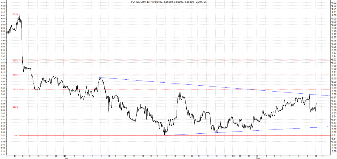 CHF/PLN - analiza od 15 kwietnia do 12 czerwca 2017