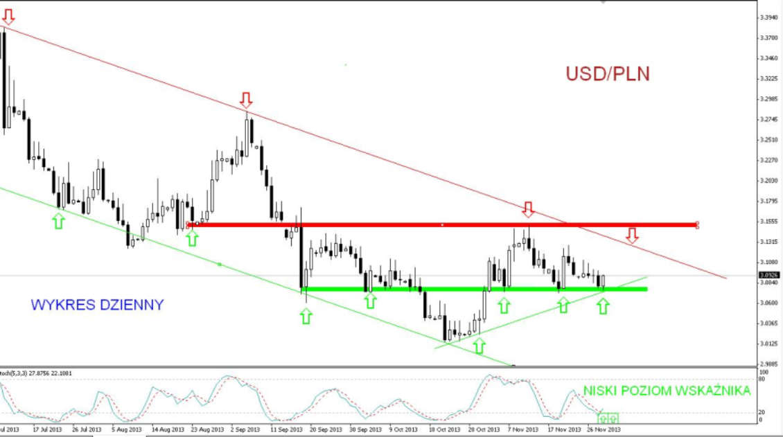 USD: W Stanach tego dnia raport Challengera za listopad. Po tym wydarzeniu przejdziemy na prezentacji PKB w USA. Tamtejsze PKB ma znacząco się poprawić nawet do 2,9% z 2,5%. Tradycyjnie jak w każdy czwartek dane o ilości wniosków dla bezrobotnych. Prognozuje się wzrost do 330 tys. z 316 tys. Negatywny odczyt w strefie zamówień w przemyśle w ujęciu miesięcznym za październik: spadek z 1,7% do -1%.