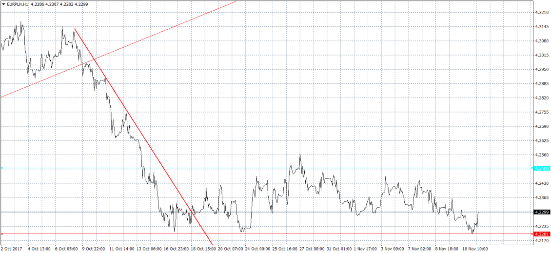 Wykres: EUR/PLN - analiza od 2 października 2017 do 13 listopada 2017 roku