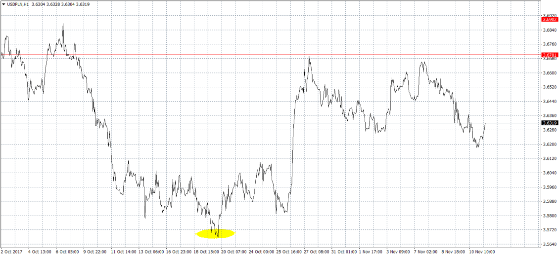 USD/PLN - analiza od 2 października 2017 do 13 listopada 2017 roku