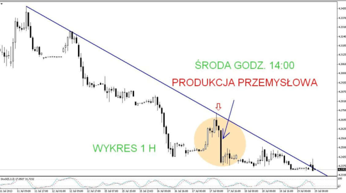 PL: W środę tak jak to było przewidywane, złotówka umocniła się, gdyż dane o produkcji przemysłowej nie tylko były lepsze od ostatniego odczytu ale również lepsze od prognoz i wyniosły 3.0%. Na reakcję rynku nie trzeba było długo czekać. W kwestii technicznej mieliśmy też potwierdzenie i odbicie się od linii trendu (na rysunku niebieska linia). Zarówno w tym samym czasie prezes Fed Ben Bernanke ocenił, że przyszłość programu luzowania ilościowego jest zależna od warunków panujących w amerykańskiej gospodarce, a bank centralny jest gotowy zarówno na zmniejszenie, jak i zwiększenie tempa skupu obligacji. Nadal komentarz ten nie zmienił tendencji na złotówce.