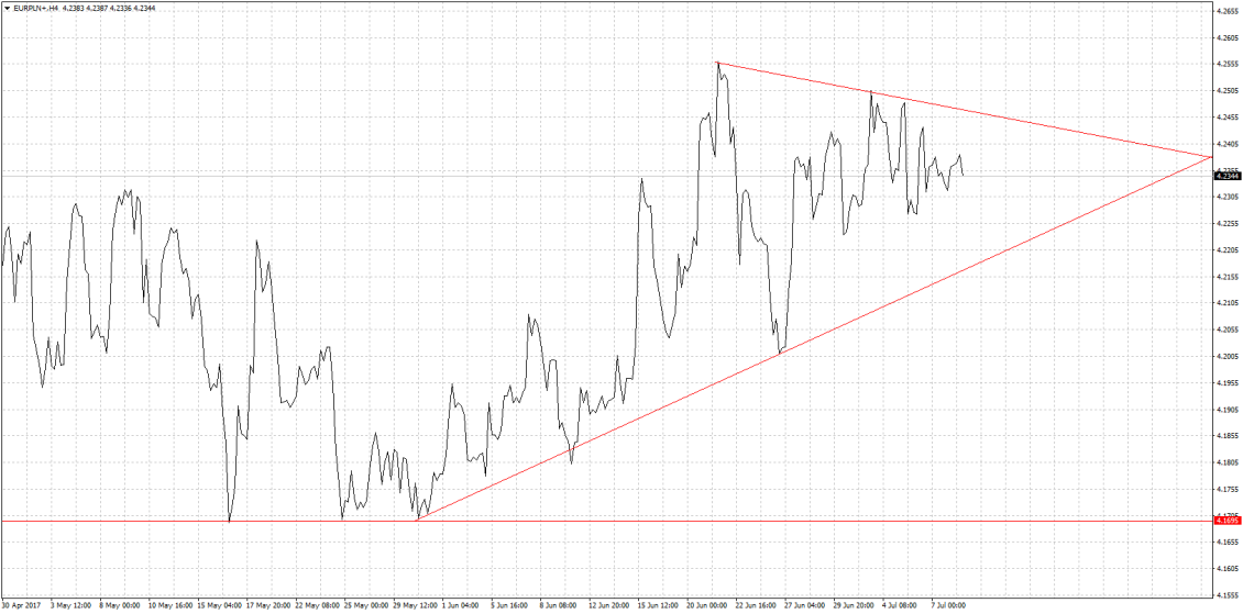 Wykres: EUR/PLN - analiza od 30 kwietnia do 7 lipca 2017