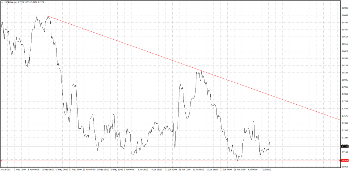 USD/PLN - analiza od 30 kwietnia do 7 lipca 2017